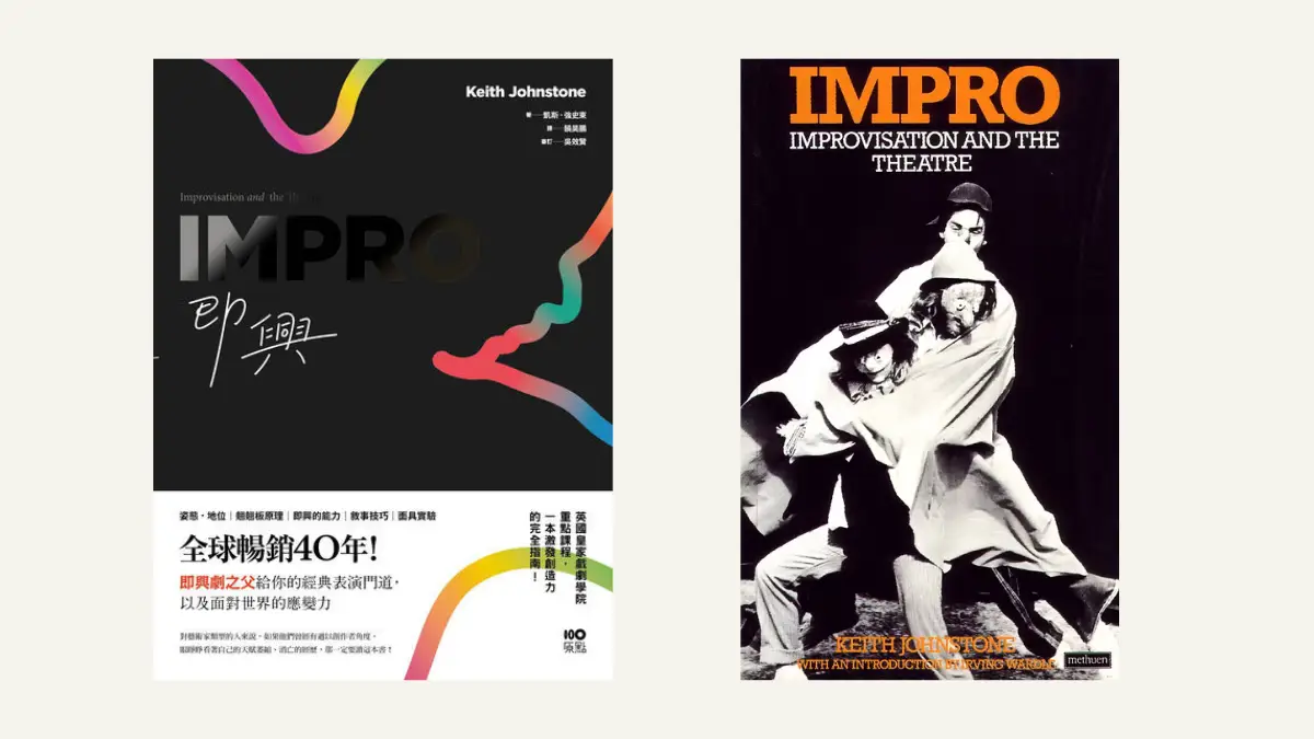 《即興》是一本超過 40 年、1979 年出版的經典表演書,作者是英國戲劇大師 Keith Johnstone。當他在英國皇家宮廷劇院工作時的觀察,他發現受過專業訓練的演員在即興表演時,竟然比一般人還要糟糕。